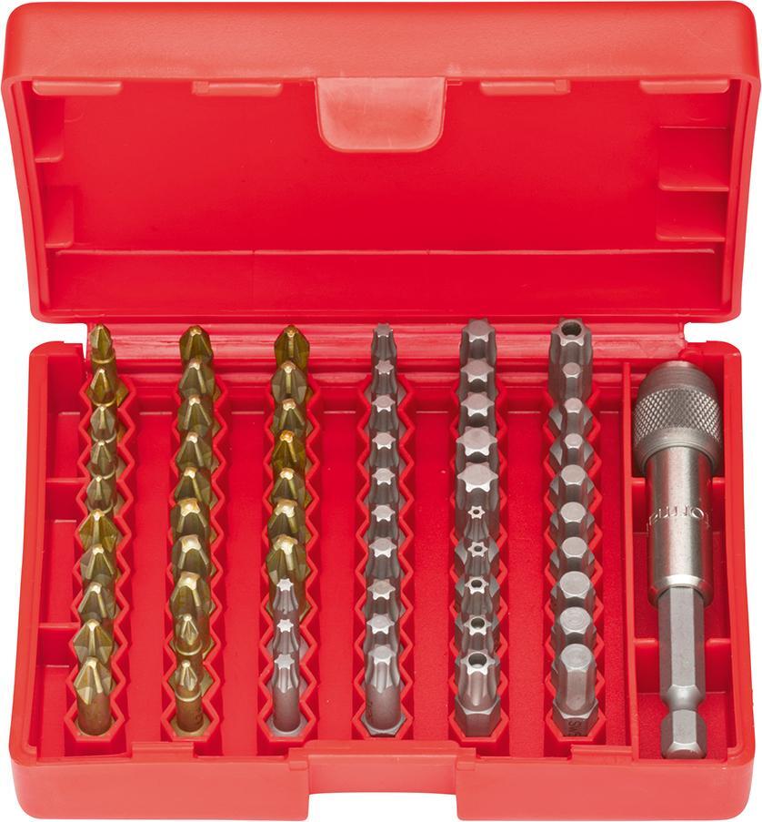 Sortiment bitov, krížová drážka PH/PZ, vnútorný šesťhran, vnútorný TORX® Vyhotovenie: S húževnatými a extra tvrdými bitmi v plastovom boxe. Bity sú prehľadne usporiadané a dajú sa rýchlo a cielene vybrať. Použitie: Húževnaté bity vhodné predovšetkým pre skrutkové spoje v kovoch a plechu. Extra tvrdé bity sú vhodné pre skrutkové spoje do dreva. Výrobca: Einkaufsbüro Deutscher Eisenhändler GmbH, EDE Platz 1, 42389 Wuppertal, DE, +4920260960, webkontakt@ede.de