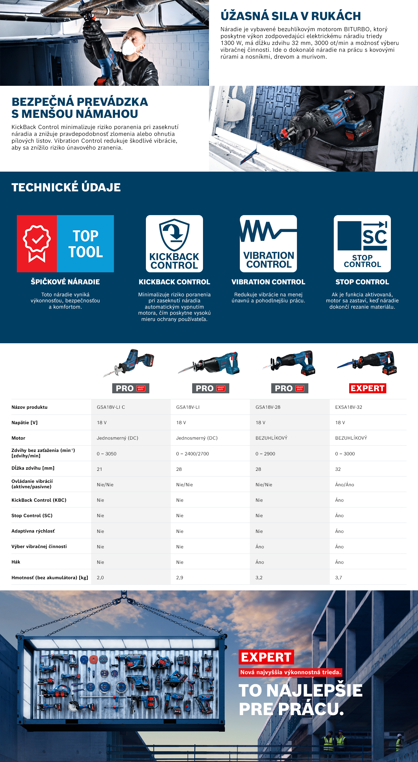 "Dokonalé náradie na prácu s kovovými rúrami a nosníkmi, drevom a tehlami. Kompatibilita so systémom Bosch Professional 18 V a alianciou výrobcov akumulátorov AMPShare.